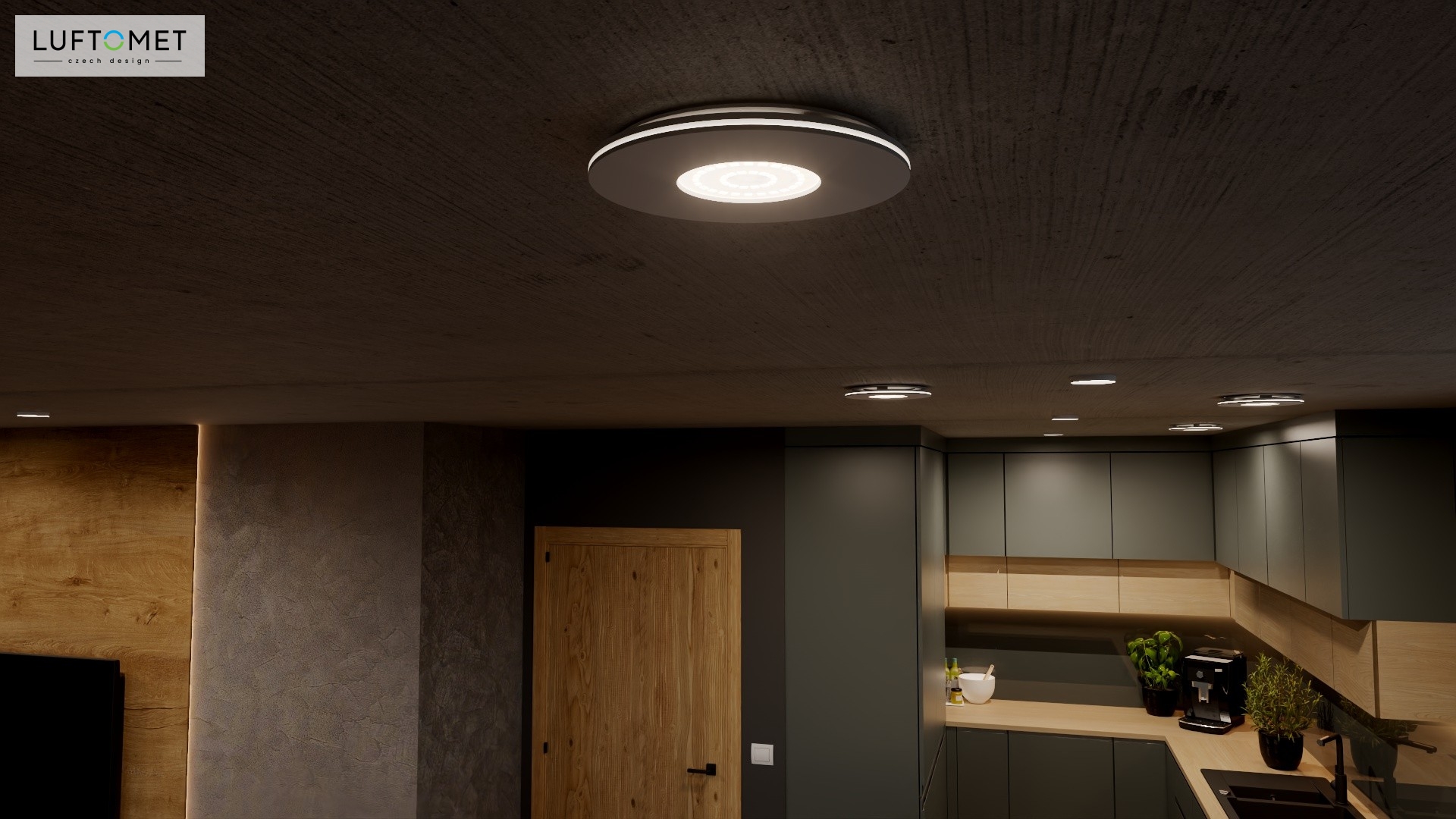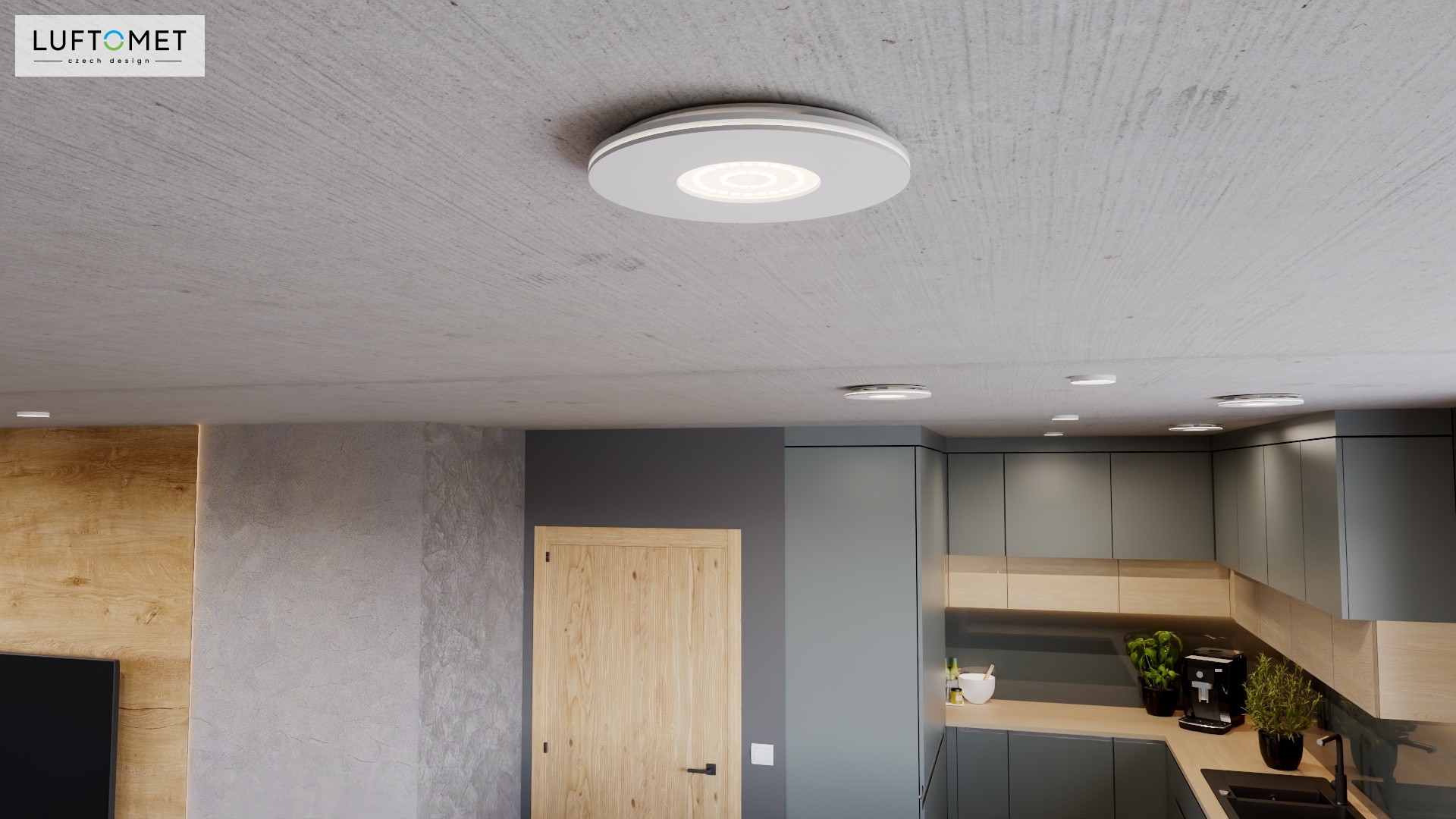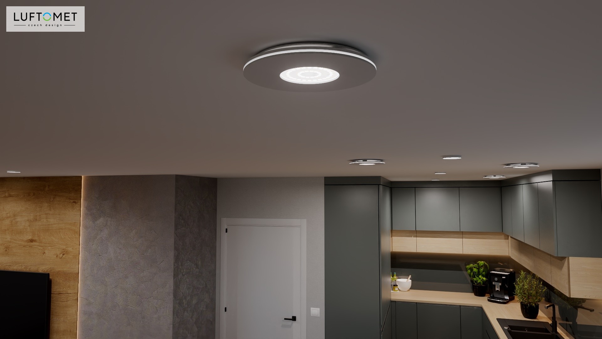 Využítí LUFTOMET Lumen plast kruh v bílé lesklé barvě v interiéru.