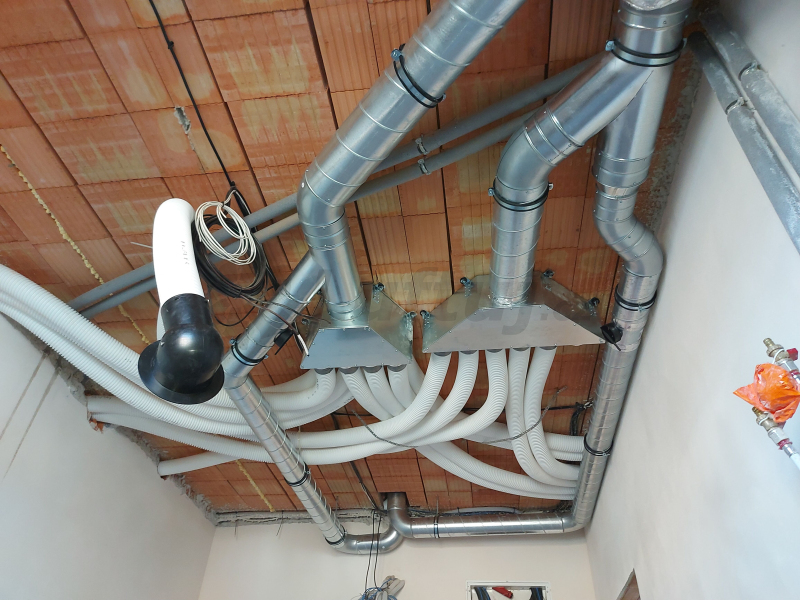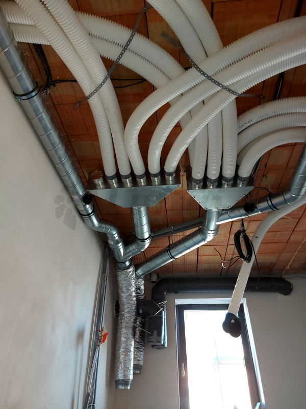 Využitie stenového boxu na riadené vetranie s rekuperáciou domu. Stenový box priechodný pre tanierový ventil DN125.