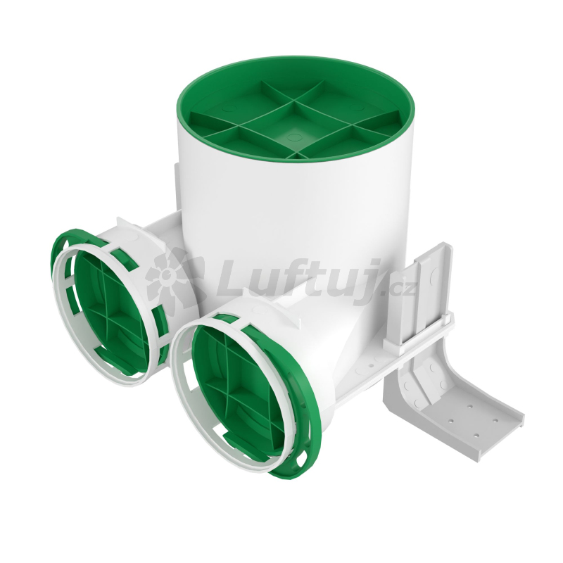Pripojovacie konektory s priemerom Ø90 mm sú vybavené tesnením a špeciálnou ochranou pripojených potrubí, čo zaisťuje tesnosť celého systému vo vysokej triede D. Montáž boxu je uľahčená konzolami, ktoré umožňujú nastavenie výšky inštalácie a prispôsobia sa miestu inštalácie. Zaručujú rýchlu a jednoduchú inštaláciu pripojovacích schránok do systému. Box umožňuje pripojenie maximálne dvoch vetracích potrubí s priemerom Ø90 mm k prívodnému alebo odvodnému ventilu.